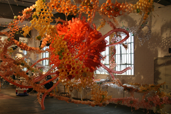 Right now, “Sacrifice + Bliss,” an exhibition of Robson’s most recent works, is on view at the Franklin Park Conservatory and Botanical Gardens in Columbus, Ohio (through April 28, 2013). One of the more unusual venues in which the artist’s sculptures have been presented to date, the conservatory, with its diverse horticultural collections and global climate zones, provides a provocative and relevant setting for her works, whose bushy, organic forms bring to mind those of exotic plants on land or under water.
