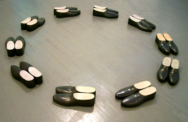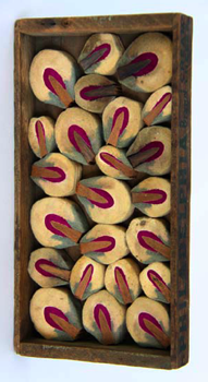 Echoes, repeating rhythms, reverberations of thoughts, emotions, sights and sounds - such are the movements in the heart and in the mind that have become both the fleeting subjects and, along with beads, dried rose petals, used clothing and even copper-penny coins, some of the raw materials of Donna Sharrett’s distinctive art.