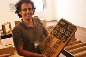 Globalization Factory (2009), a mixed-media work by the Cuban artist Abel Barroso: Based in Havana, Barroso has been interested in what might be called his country's low technological literacy level. Mobile phones, computers and the wide range of everyday, electronic gadgets that consumers in many other parts of the world take for granted are still rare in Cuba, where Internet service is slow and cumbersome, and allowed by the government only in certain hotels, for use by foreign tourists. The government also grants artists, writers and academics who are members of a national, cultural-workers organization limited access to e-mail and the Internet. As Barroso sees it, Cuba is as isolated technologically as it is politically and economically from much of the rest of the world, and it has a lot of catching-up to do. The artist works in wood, carving detailed, oversized replicas of common electric or electronic devices, such as blenders, TV remote controls, mobile phones and laptop computers. Barroso's chunky, exaggeratedly large, wooden copies of these high-tech items call attention to the ways in which, for many Cubans, who can only dream of ever owning the real things, such sophisticated consumer products have become fetishized objects of desire.
