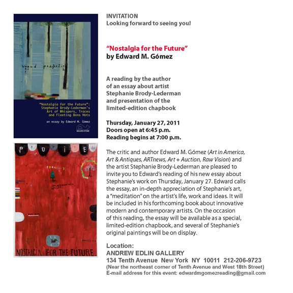 TOKYO - In the U.S.A., my new article about the most recent works on paper created by the New York-based painter Stephanie Brody-Lederman has been published in the September 2012 issue of Art & Antiques. Here is a link to the article as it appears in the print edition of the magazine. The artist has posted it on her website. I’ve written about this artist’s psychologically charged, emotionally ambiguous, not-quite-abstract work before; with its unabashed lack of guile or self-conscious irony, it turns a lot of tired postmodernist posing on its head or maybe it shows it a clear path to the door.