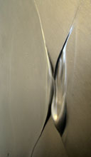 Above, left to right: Cover of the publication that accompanies artist Aurora Robson's current exhibition at the Franklin Park Conservatory and Botanical Gardens in Columbus, Ohio; Updroplet, 2012, approximately 30 inches tall and 24 inches around; and Landmine, 2009,approximately 3.5 feet tall and 4 feet around. Both sculptures made of PET plastic, rivets, tinted polycrylic and mica powder. Below: Be Like Water, 2010. Photos of artworks courtesy of Auraora Robson's website. |