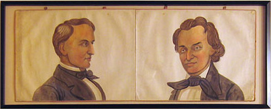 Above, left and right: Chickens and cows living the good life down on the farm, back in the good ol' days before they were made to stand round the clock, cheek to cheek, with no room to move, in their own excrement, in huge sheds with no light (chickens) or in open-air feed lots (cows), and force-fed feed derived from genetically modified corn. Photo on the left: Dated September 1918; photographer unknown; Robert N. Dennis Collection of Stereoscopic Views, New York Public Library Digital Gallery. Photo on the right: Late-19th-century trade card; New York Public Library Digital Gallery. |