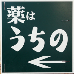 More images from Zushi, Japan: On the left, an awning over the entrance to a florist's shop ("hana" means "flower" in Japanese), and, at right, a sign for a shop that sells home-made medicines. Photos by E.M.G. |