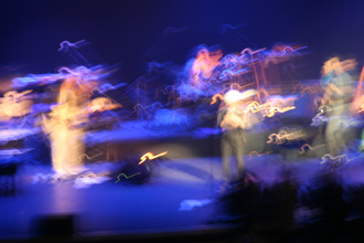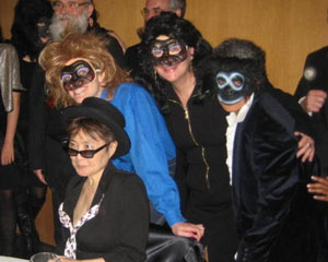 Above, left: Yoko Ono, in white cap and in a blur, fronting the Plastic Ono Band at Royal Festival Hall, London, in a June 14 concert in this year's Meltdown festival. Above, right: Ono in Venice, Italy, on June 6, seconds after receiving the Golden Lion Award for Lifetime Achievement from the organizing committee of the 2009 Venice Biennale. Photos by E.M.G. |
