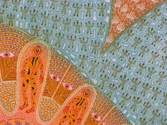 Above, top: A small-scale sculpture made of felt by the Japanese artist Mariko Suzuki, of the kind she uses to illustrate children's stories. Now based in New York, Suzuki works for the internationally known artist Jeff Koons; in her own art-making, in addition to her felt sculptures, she also creates drawings of imaginary worlds that are based on her dreams. See a detail of one such work immediately above. Photos by E.M.G.