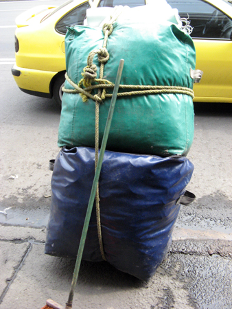As I walked through the streets of one of Tokyo’s busiest business districts—like a fool, in a suit!—I spotted this little, wooden, traditional-style structure, which was tucked away on a narrow side street among the skyscrapers. It’s small architectural gems like this one, along with the overall coziness and labrynthine character of so much of Japan’s urban space, that never fail to seize my attention and my imagination here. To see some of the ingenious dwellings some Japanese contemporary architects have created in recent years on unfathomably tiny plots of land in Tokyo and other cities in Japan, do a Google search using these words: “Tokyo small houses.” Also check out this photo-filled group of articles on this subject in the online architecture magazine Dezeen.