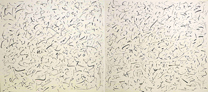 Above: Nuances (2014), pencil on Magnani paper; two sheets, each sheet 21.125 inches high x 23.75 inches wide. Click on the ART PROJECTS button on the menu in the upper, left-hand corner of this home page or click here to read my description, with photos, of artist Michael Newman's paintings and drawings in various media, which I'm looking at and thinking about now, and about which I'm working on an in-depth critical essay. Posted by E.M.G. |