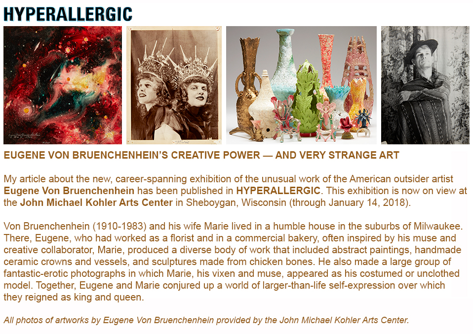 Click on the picture box, above, or click here to see the published HYPERALLERGIC article about the Von Bruenchenhein exhibition.