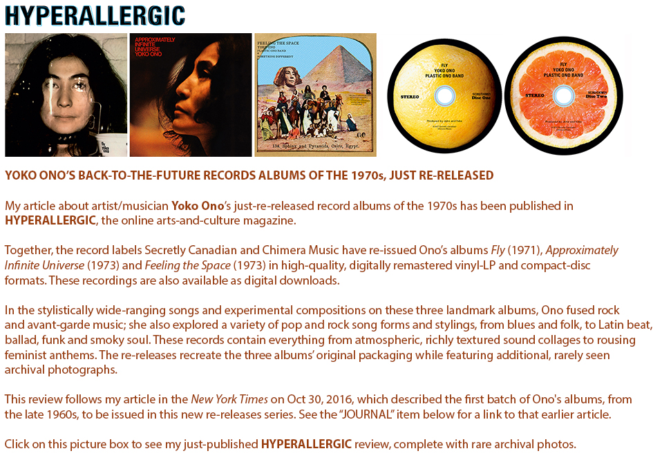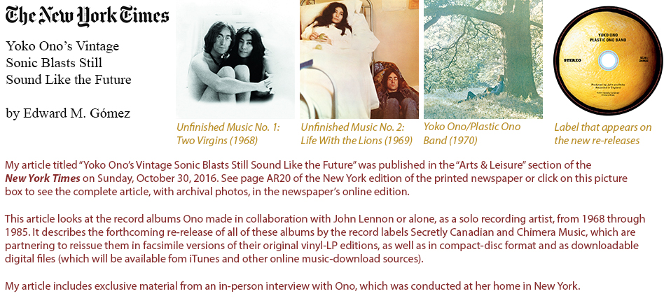 Click here to go to the online version of my New York Times article about Yoko Ono’s record-album re-releases and music-recording career.