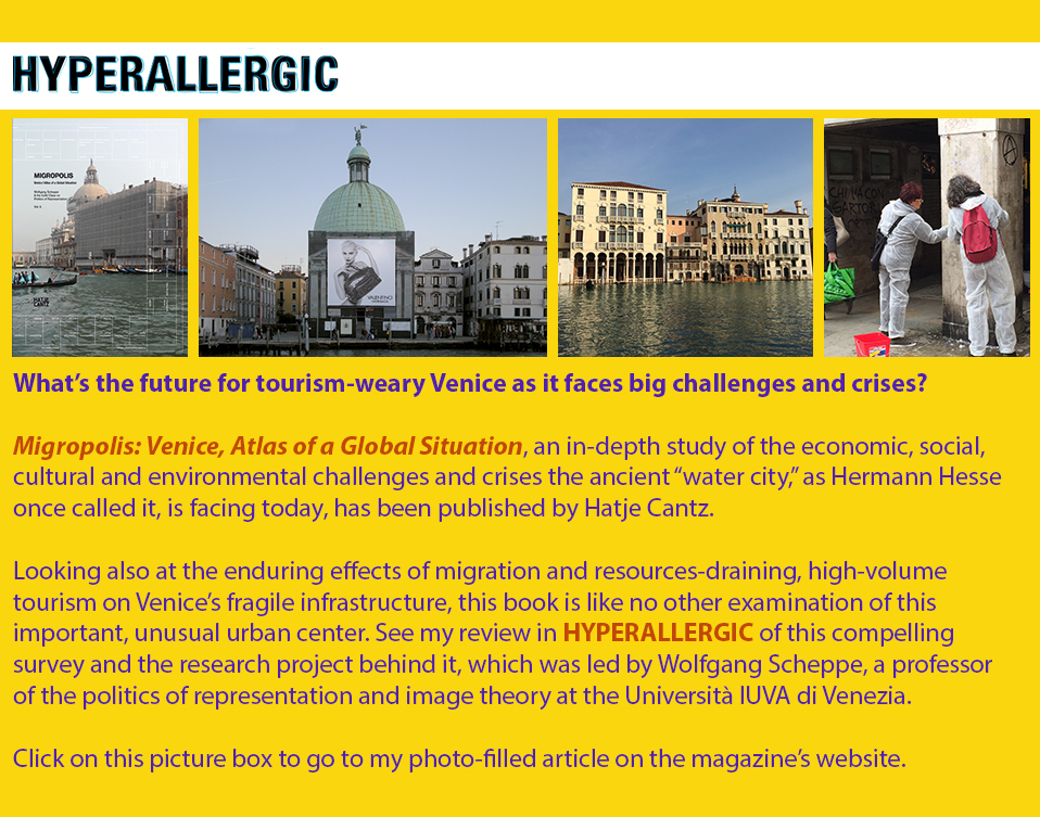 Click on the picture box, above, or click here to see the HYPERALLERGIC article about the new book, Migropolis: Venice.