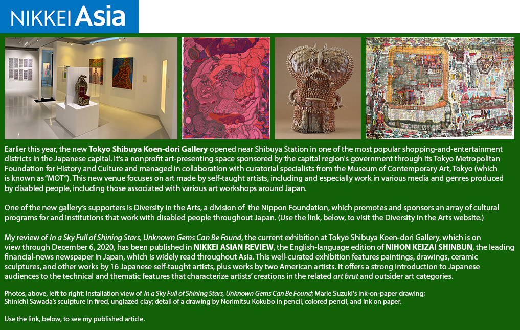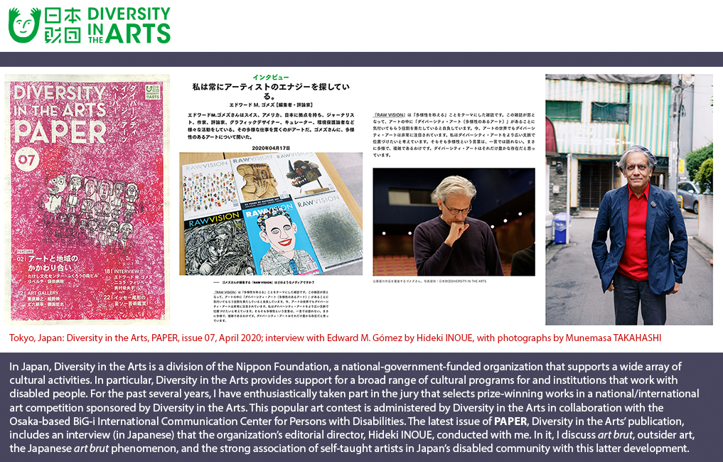 Please click here to see my Diversity in the Arts PAPER interview about art brut, outsider art, and the Japanese art brut phenomenon.