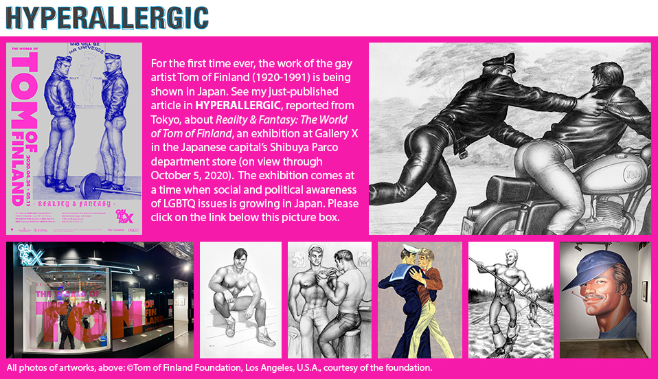 Please click here to see my HYPERALLERGIC article about the Tom of Finland exhibition that is now on view in Tokyo.
