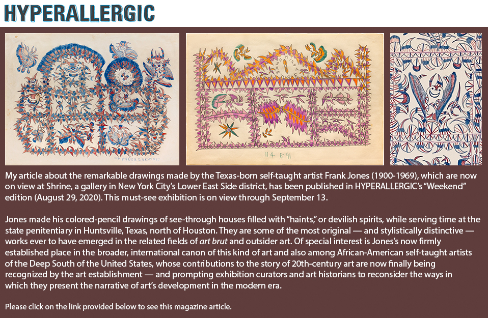 Click here to find my HYPERALLERGIC article about Frank Jones's drawings, now on view at Shrine.