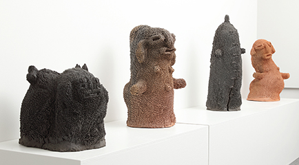 | Above: Unglazed, fired-clay sculptures made by the self-taught Japanese artist Kazumi Kamae, on view at Yukiko Koike Presents, in Tokyo. Photos courtesy of the gallery. |