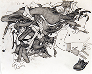 “Explosive Drawing: Susan King’s Mash-ups, Strange Landscapes and Other Worlds,” article about the debut gallery exhibition in New York of a self-taught artist from New Zealand, HYPERALLERGIC, Nov. 8, 2014 |